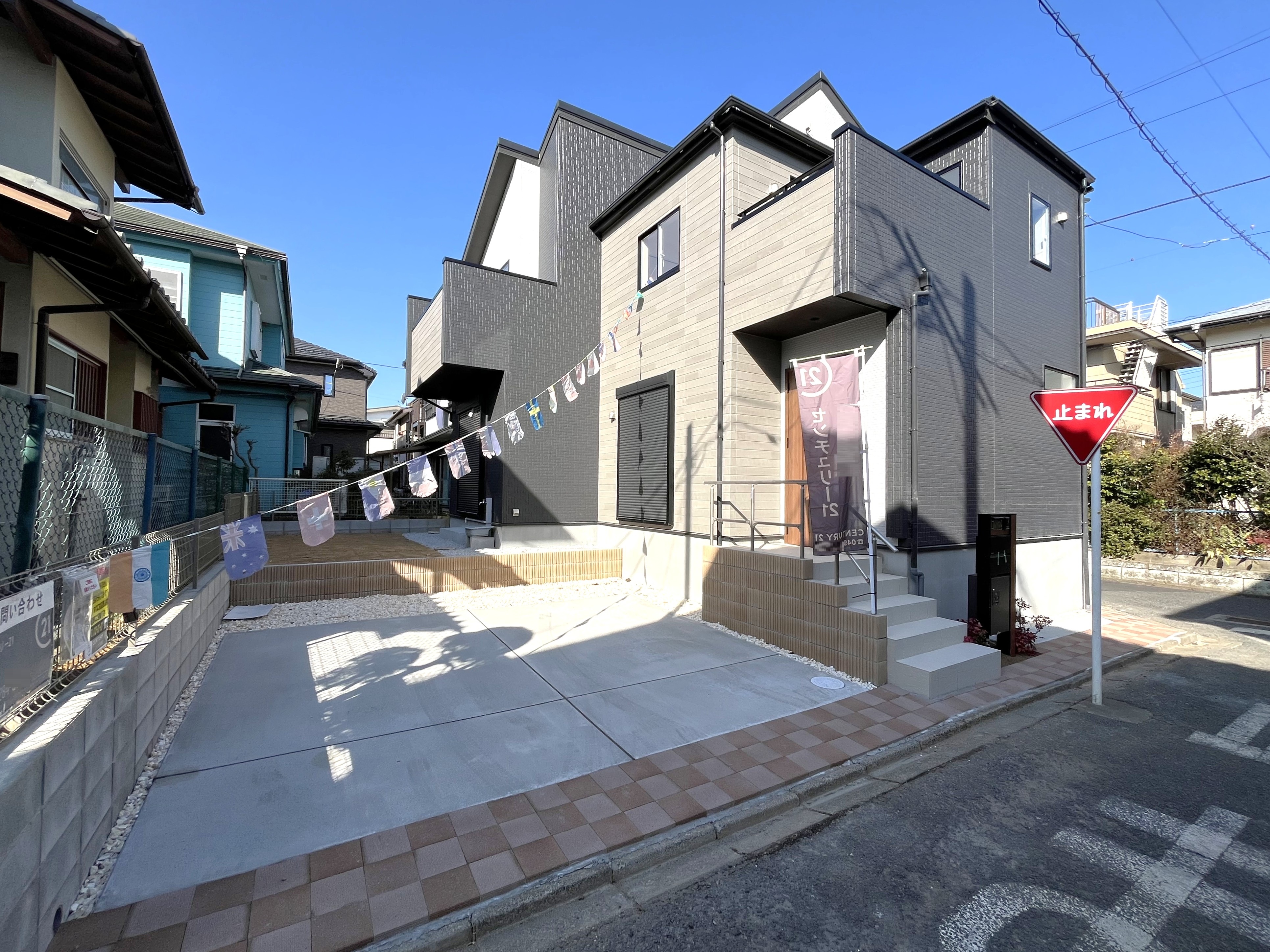 小畔川の近くの住宅地には多数の新築物件があります