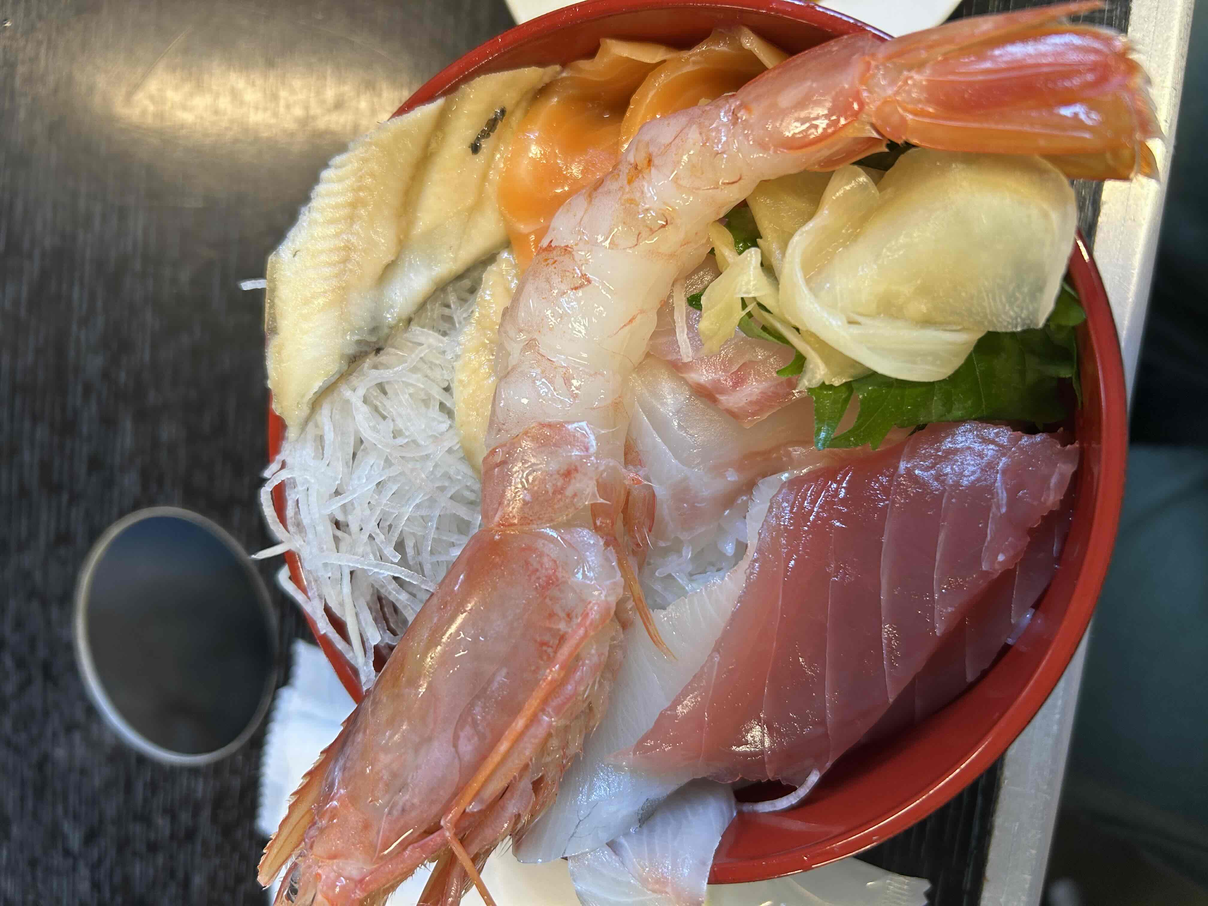 写真だとそんな風に見えないのですが、新鮮なお刺身がたっぷり重なるように入っていて大満足